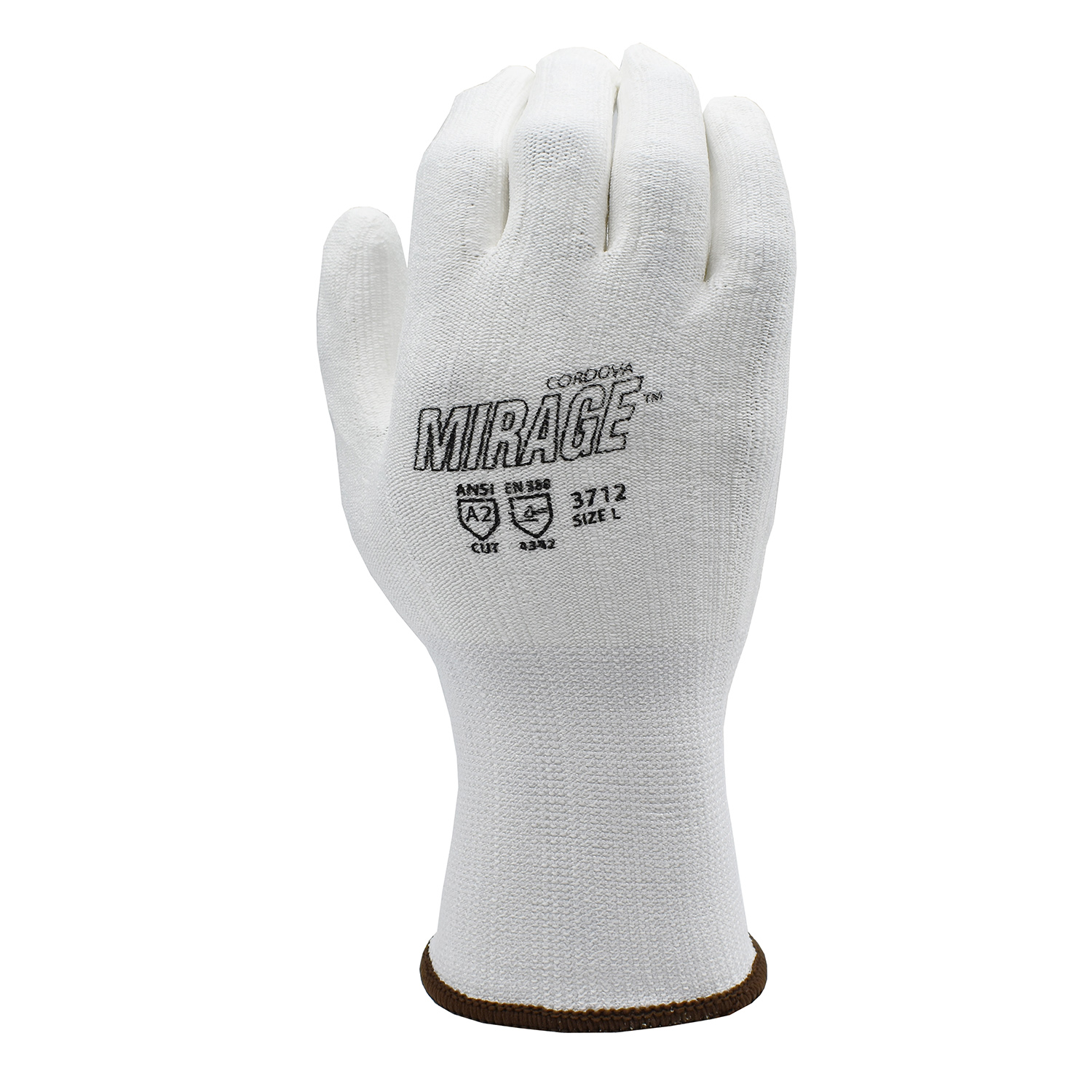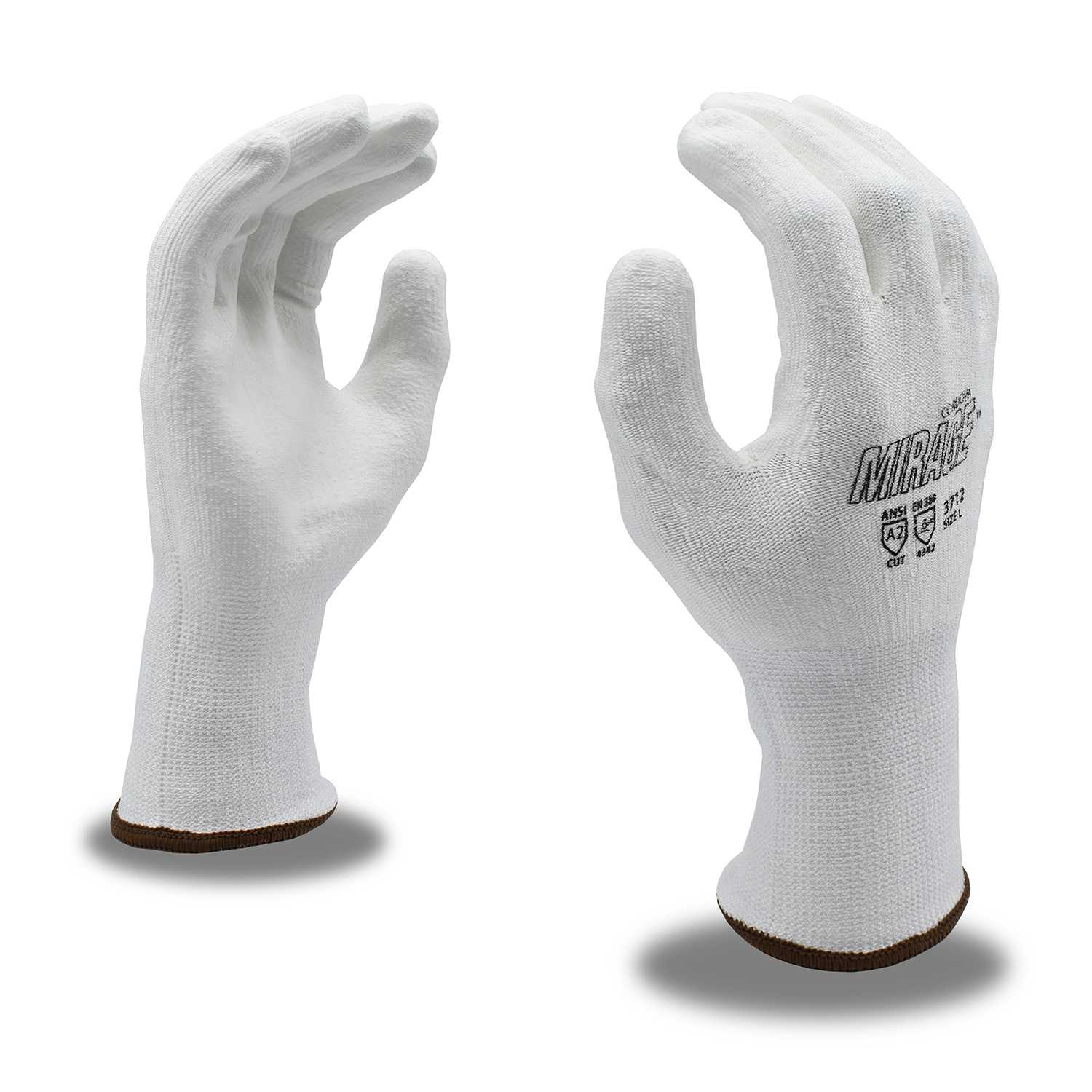High-performance gloves are machine knit constructed of high-strength yarns that provide increased levels of dexterity and abrasion- and cut-resistance. Most feature coatings to increase the durability and gripping power. High Performance Polyethylene (HPPE) has a tensile strength 15 times stronger than steel on an equal weight basis. Gloves made with HPPE are lightweight, comfortable and abrasion- and cut-resistant. Tests have shown that gloves made with HPPE fibers have up to 20 times the abrasion resistance of gloves made with spun Aramid yarns. The CORDOVA-brand Mirage™ glove features a white, 13-gauge HPPE shell and white polyurethane (PU) palm coating. It offers an A2 cut level.
